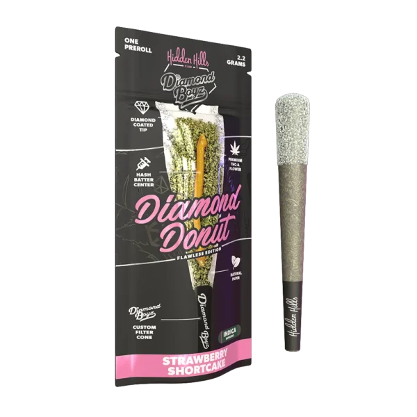 Experience sophistication in every draw with the Hidden Hills Diamond Donut Pre Rolls, an exclusive collaboration between Hidden Hills and Diamond Boyz. Designed for the true connoisseur, each 2.2-gram pre roll delivers a perfect balance of potency, flavor, and craftsmanship that sets a new standard in premium hemp smoking.